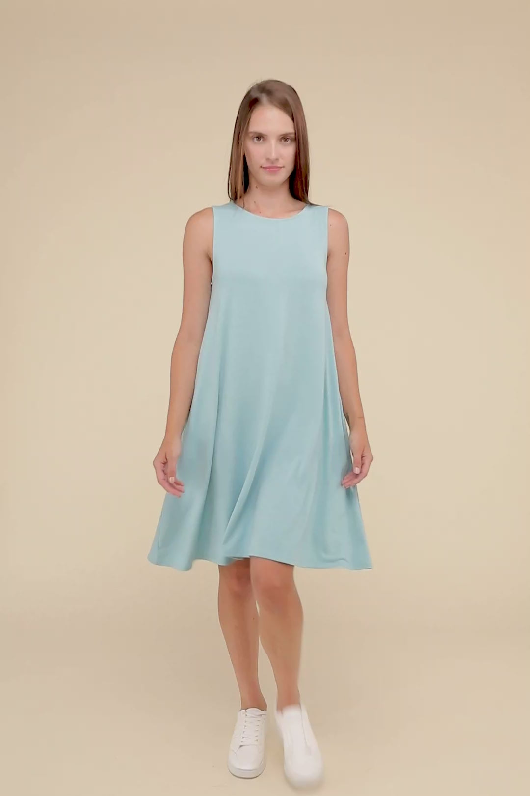 ZENANA Sleeveless Flared Slip Summer Dress with Side Pockets