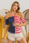 [message]Celebra tu amor por Estados Unidos con estilo con el top BiBi con hombros descubiertos y bandera estadounidense. Esta moderna prenda luce un festivo motivo de la bandera estadounidense y favorecedores detalles fruncidos en la parte delantera, perfectos para mostrar tu espíritu patriótico. Combínalo con shorts o jeans para una versión chic y moderna del estilo estadounidense.