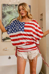 Continuar comprandoEl top de punto BiBi con estampado de bandera estadounidense y detalles fruncidos laterales es la combinación perfecta de patriotismo y moda. El impresionante estampado de la bandera estadounidense se combina con detalles fruncidos laterales que le dan un toque de estilo y distinción. Este moderno top de punto es imprescindible para mostrar tu amor por el país de una manera única y a la moda. Sus favorecedores detalles fruncidos lo convierten en una prenda destacada en cualquier armario.