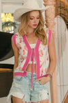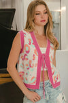 [message]Add a playful twist to your wardrobe with this bold and cozy sweater vest! π Featuring a soft pink and cream leopard print with striking pink contrast ribbed trim, this piece blends trend-forward flair with effortless versatility. The V-neck and sleeveless design make it perfect for layering over a long-sleeve tee or under a blazer, while the button-down front gives you endless styling options. Whether worn open for a casual vibe or buttoned up as a statement top, this sweater vest offers chic comfort for transitional seasons.